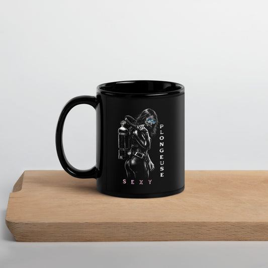 Mug brillant noir sexy Plongeuse MacJos