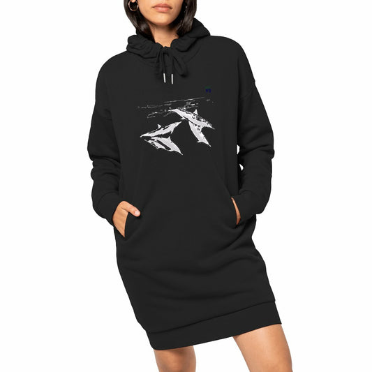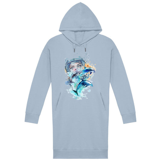 robe sweat à capuche MacJos aquarelle 3 dauphins plongeuse
